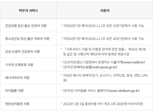 - 첫만남이용권 : 2022년 1월 1일 이후 출생한 모든 신생아