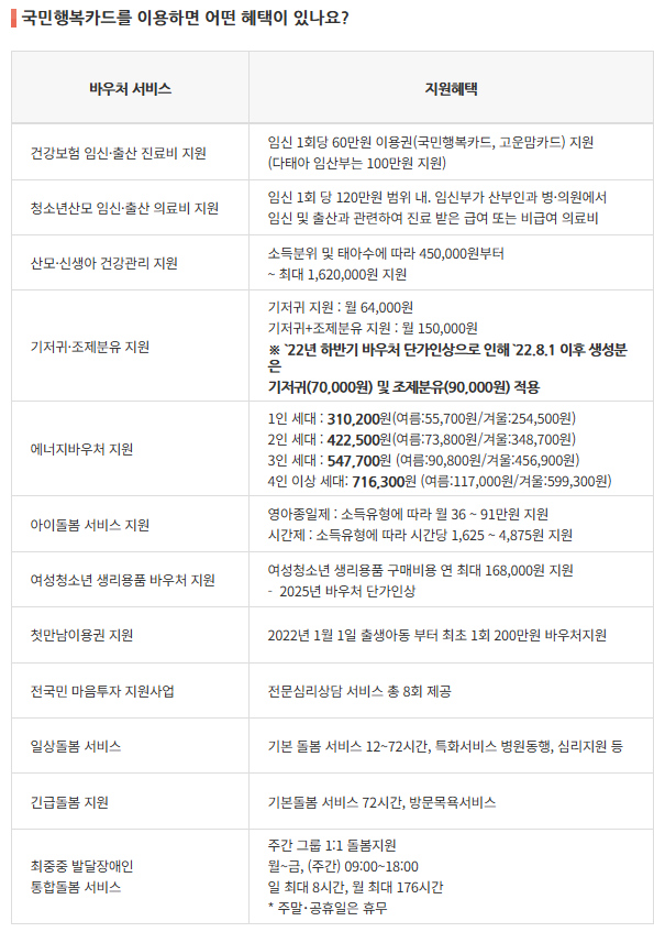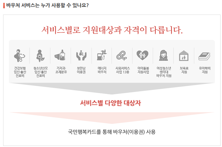 1) 국민행복카드 바우처별 지원 대상