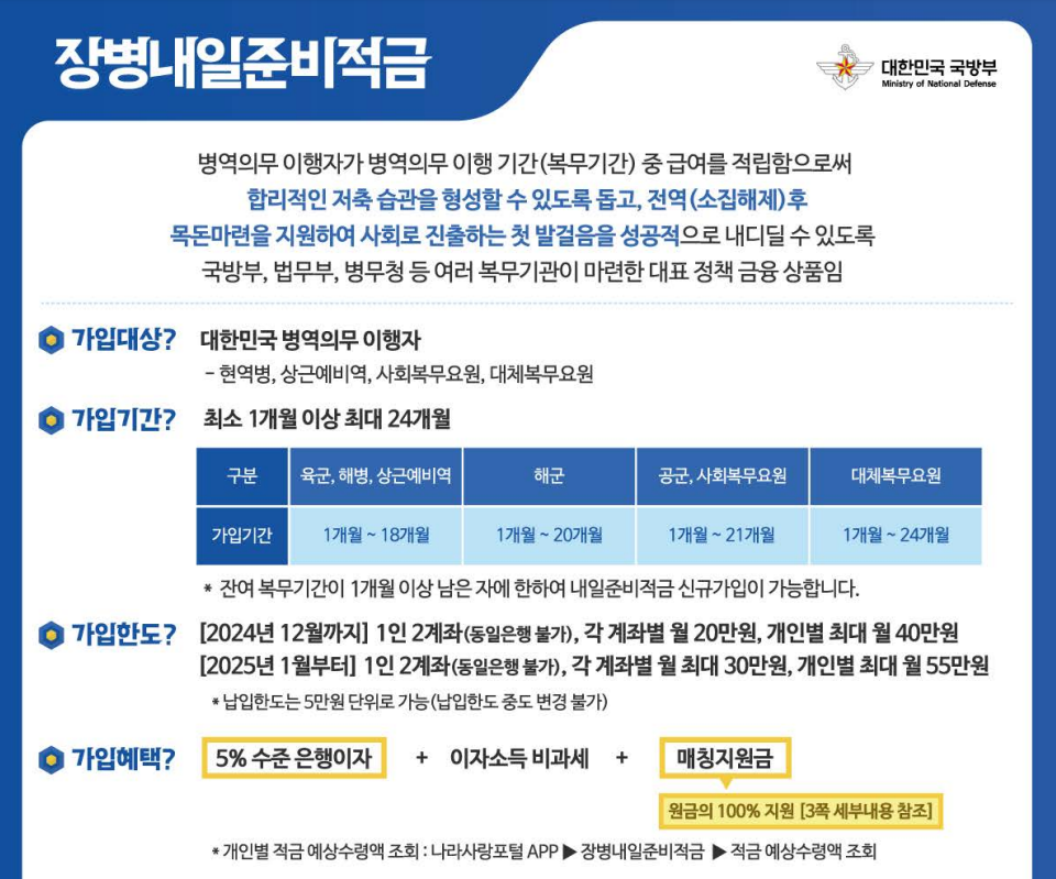 국방부 장병내일준비적금: https://www.mnd.go.kr