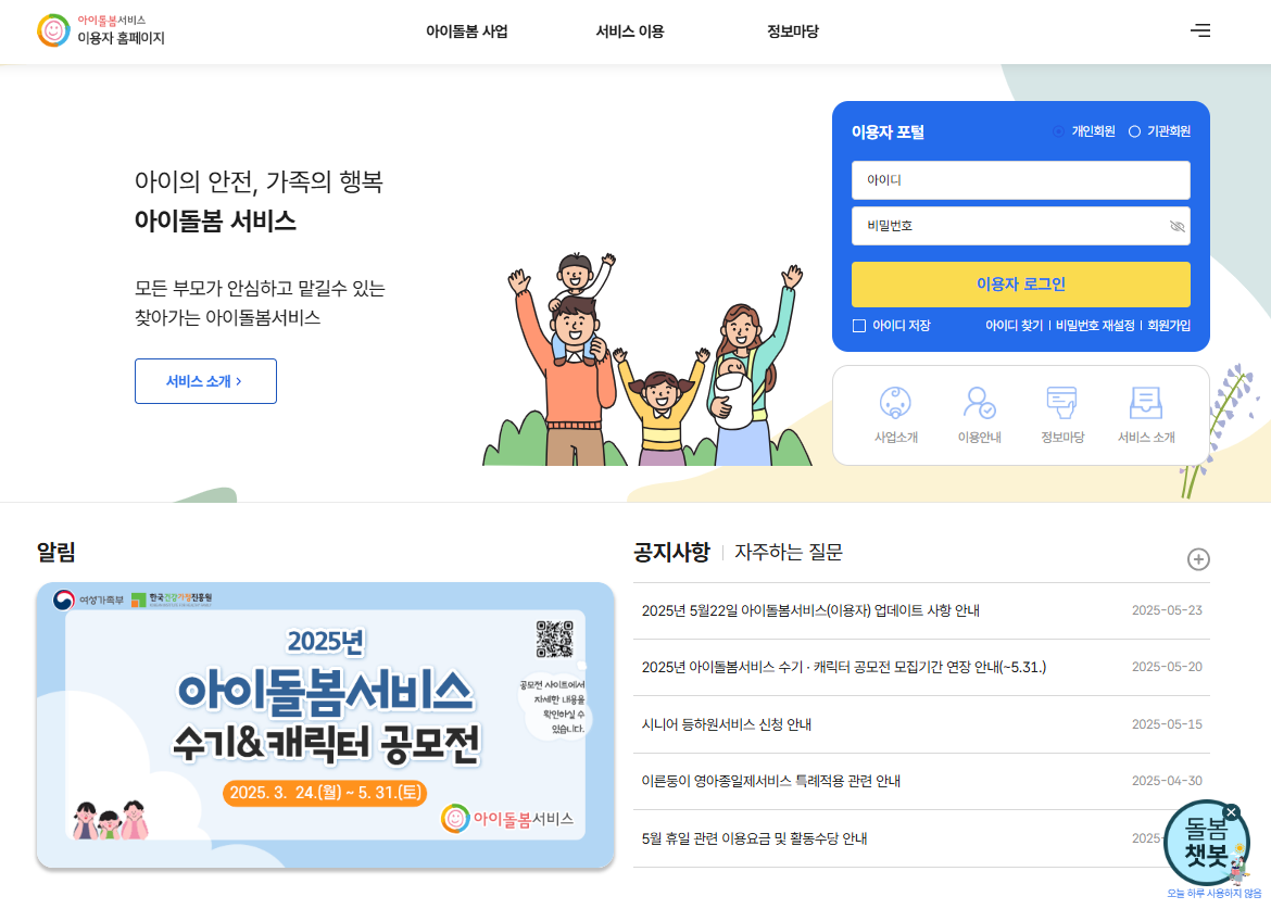 - 홈페이지: https://idolbom.mogef.go.kr