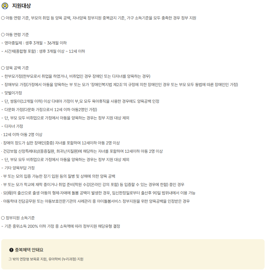 - 아이를 돌볼 수 있는 여건이 일시적으로 어렵거나, 꾸준한 도움이 필요한 경우