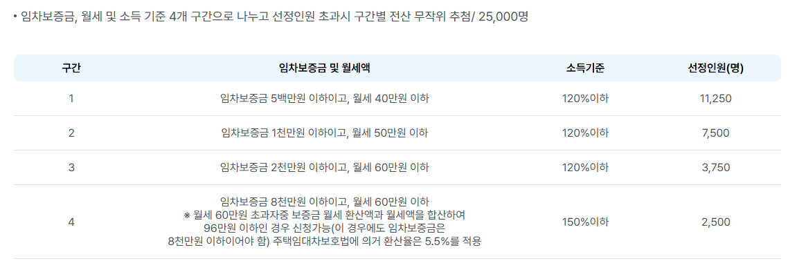 ※ 기초생활수급자, 주거급여 수급자는 신청이 제한되며, 다른 월세지원과 중복수혜가 불가합니다.