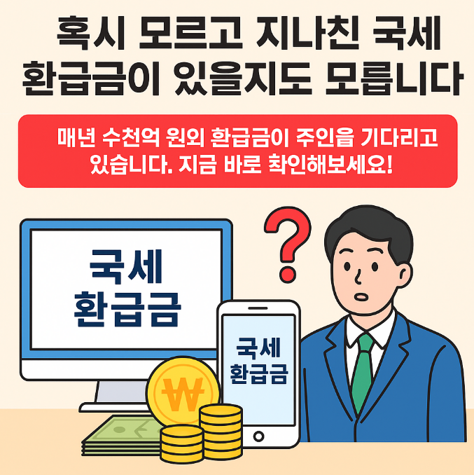 혹시 나도 놓쳤을까? 주인을 기다리는 국세 환급금, 지금 바로 확인하세요.