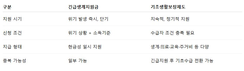 긴급복지 생계지원금 차이점