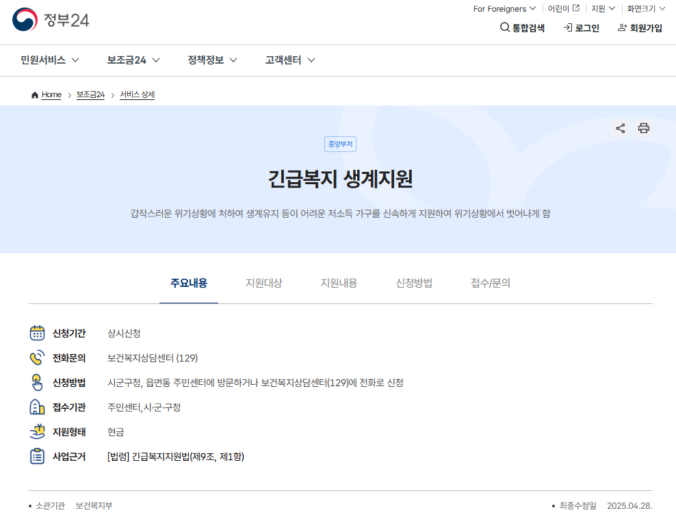 이러한 목적으로 마련된 제도가 바로 긴급복지지원제도, 그중에서도 실질적인 현금성 지원이 가능한 긴급생계지원금입니다.