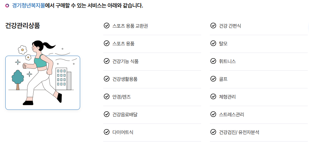 이 포인트는 현금처럼 사용할 수 있으며, 사용 가능한 항목에는 건강기능식품, 운동기구, 문화공연 예매권, 도서 및 학습비, 육아용품, 전자제품, 여행상품 등 매우 다양한 품목이 포함되어 있습니다.