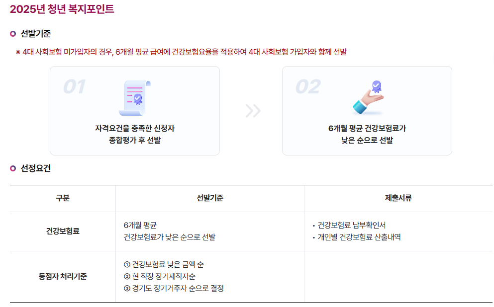 경기도 청년복지포인트 선정 기준 및 결과 안내