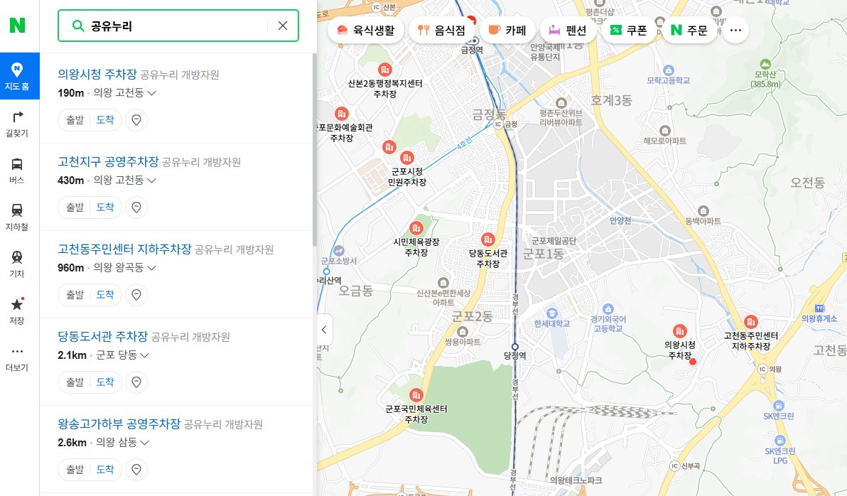또 하나의 꿀팁! 네이버지도 앱에서도 공유누리 시설을 찾을 수 있습니다.