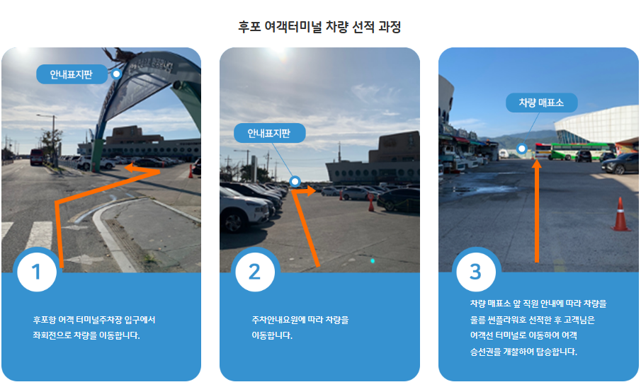 차량을 가져가는 경우 공식 플랫폼이나 콜센터에서 차량 등록 후 예약해야 하며, 현장 차량 승선 시에도 안내 데스크에서 수속이 필요합니다.