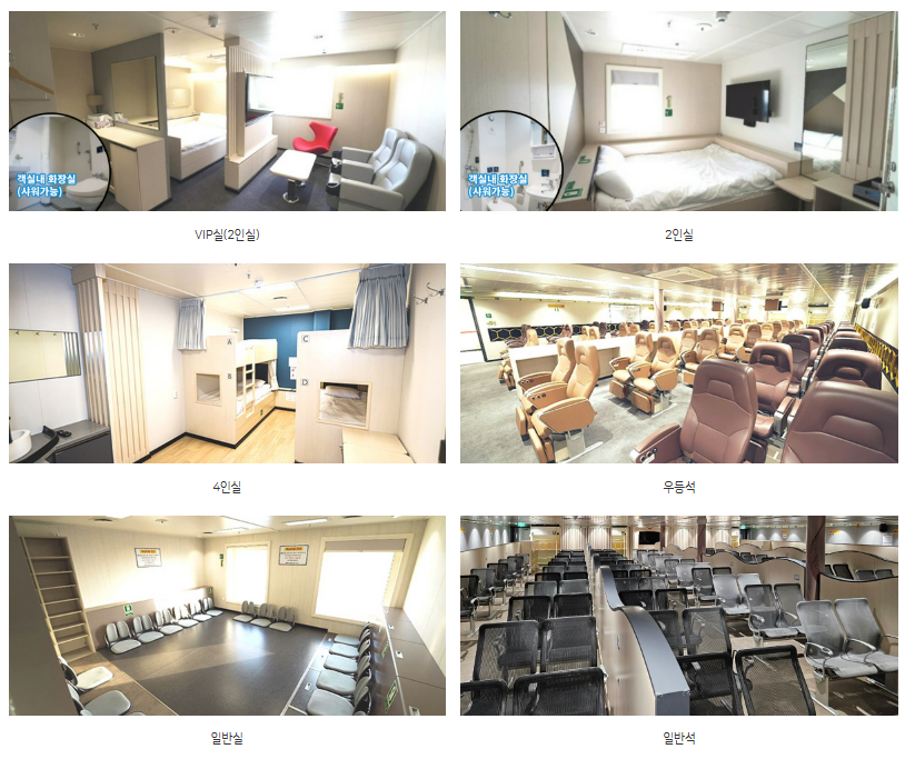 - 여객 선실 외에도 마감 좌석(3등석) 형태의 일반 승객실이 준비, 다소 단출하지만 비용을 절감할 수 있는 대안입니다.