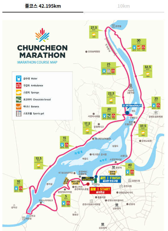 2025 춘천마라톤은 10월 26일(일) 오전 9시에 공지천교에서 출발하여 의암호 주변을 환상적으로 도는 국제공인 풀코스입니다.