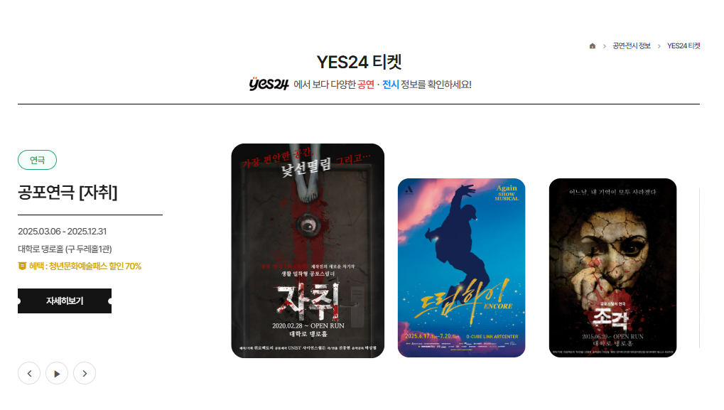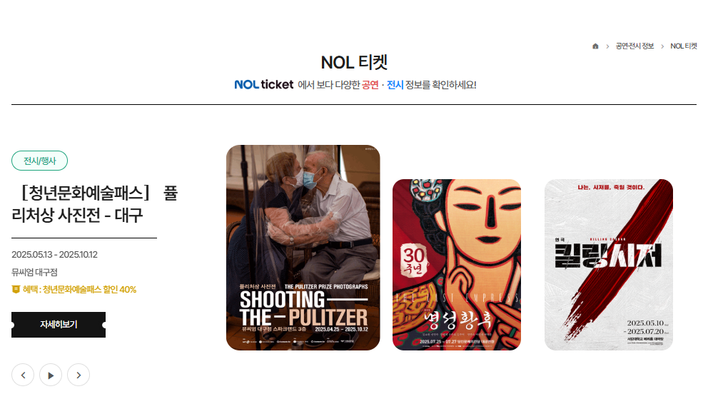 이 외에도 지역별 크고 작은 문화행사 및 전시·공연 할인 혜택을 통해 공연 관람의 기회를 넓힐 수 있습니다.