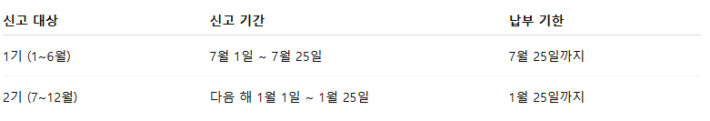 부가가치세 신고 기간